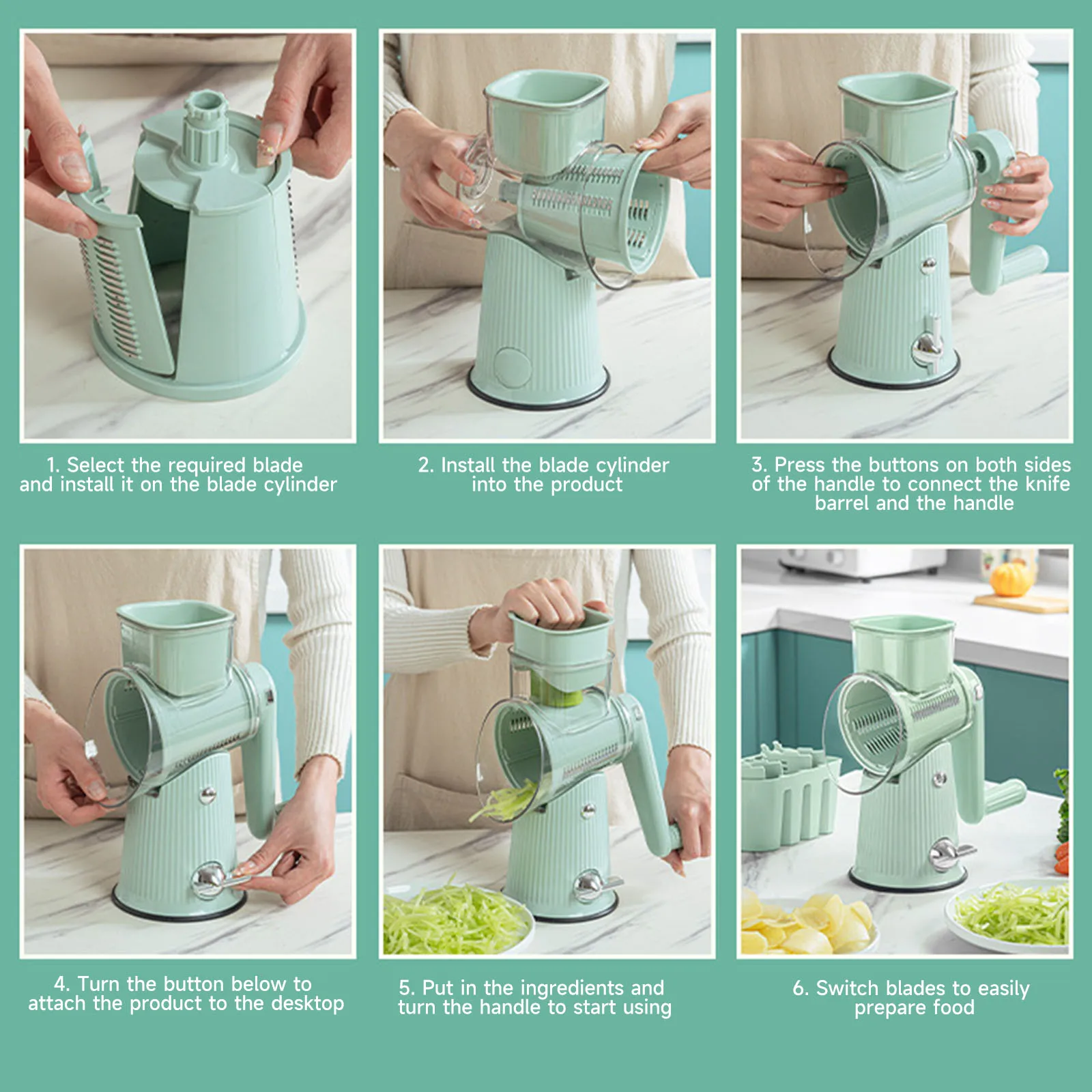 Rotary Cheese Grater and Shredder Multifunctional Drum Vegetable Cutter Food Processor Kitchen Suction Cups Shredder Fruit Drum Hand Grater Vegetable Slicer